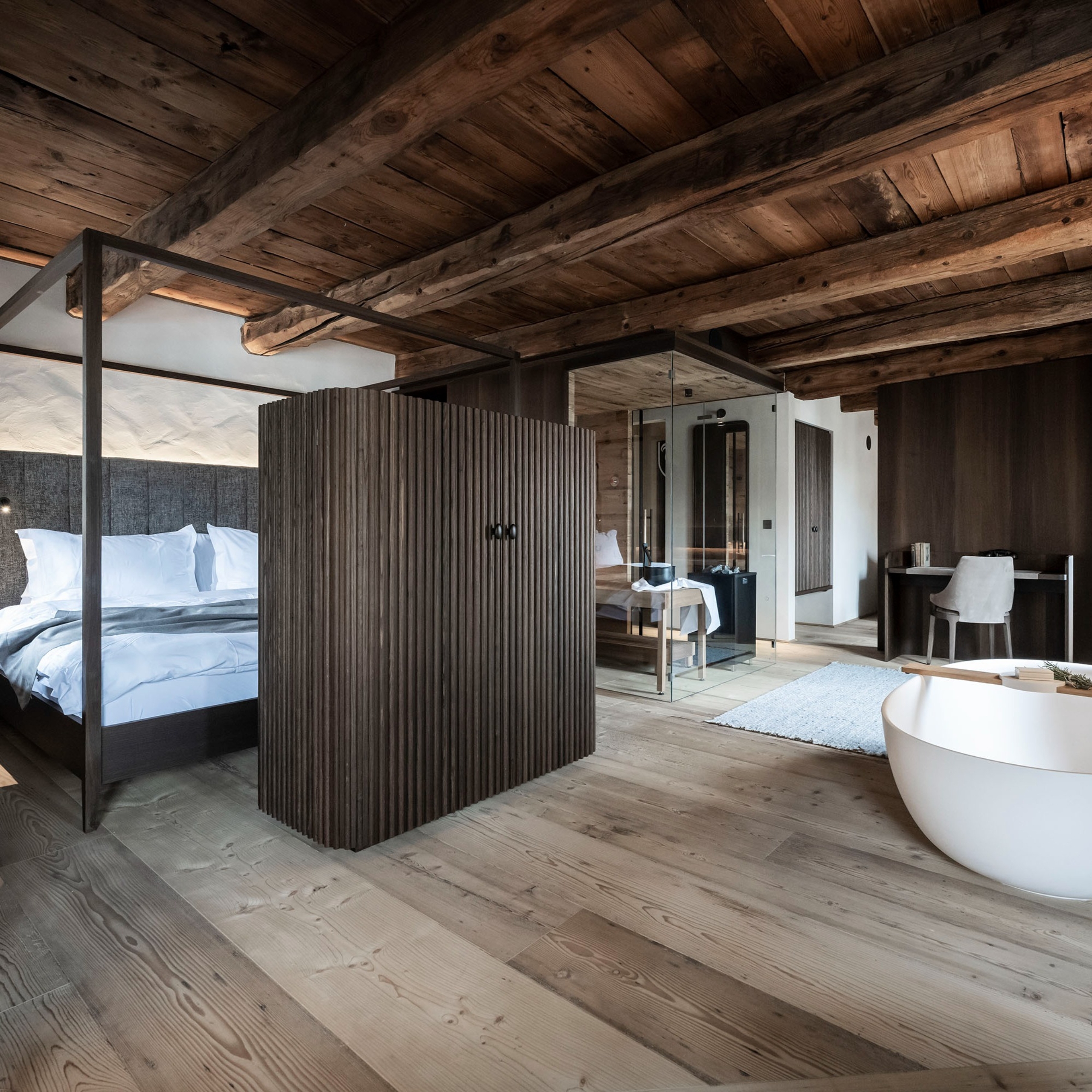 Originale Altholz Lamellen geschnitten von Balken und Brettern, welche zu 3-Schicht Böden verpresst werden. Altholzböden (außer Anno 1870) mit Fase und Nut/Feder auf den Längsseiten.