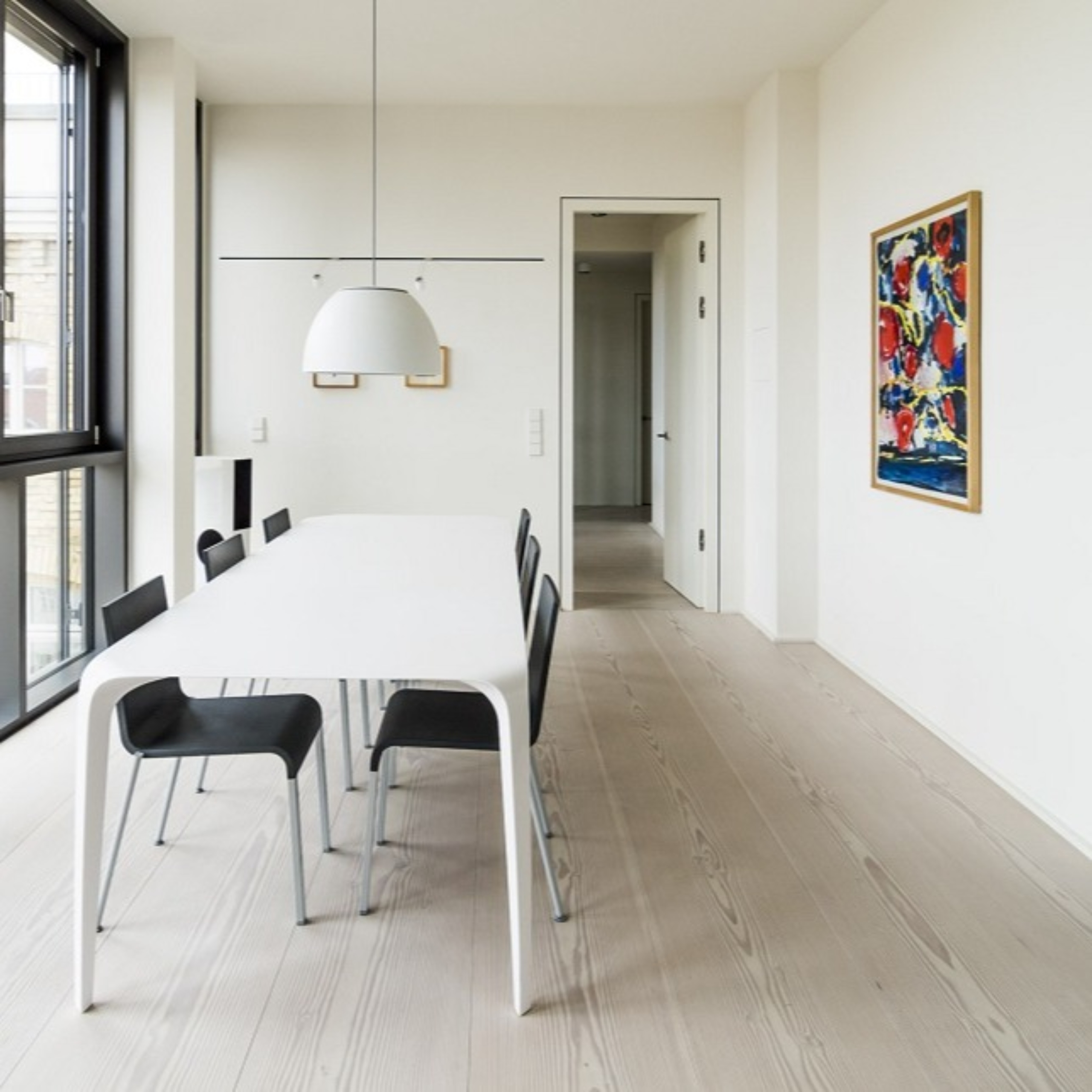 3-Schicht-Boden mit kleiner Fase auf den Längsseiten und ca. 5–5,5 mm Decklamelle bei den Dielenstärken 19 und 21 mm. Ca. 4,5 mm Decklamelle bei der Dielenstärke 17 mm. Mittellage aus Fichte mit 4,5 mm Stärke und Gegenzug aus Fichte mit 4,5 oder 8 mm Stärke abhängig von der Dielenstärke. Nut/Feder auf den Längsseiten Standard und Nut mit fremder Feder auf den Stirnseiten für endlose Verlegung gegen Aufpreis möglich.