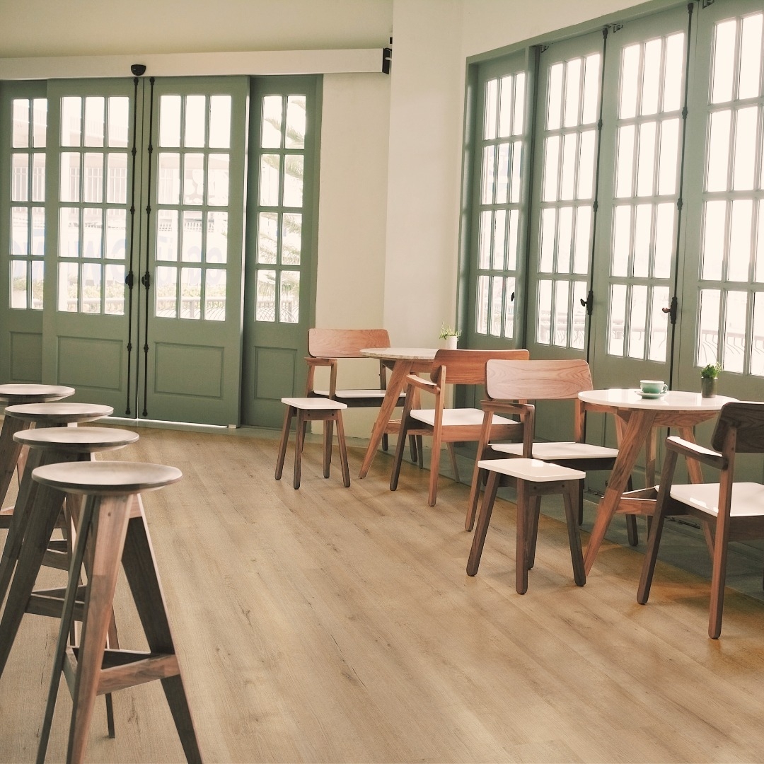 Rigid Vinylboden mit einer wasserfesten Hydro-Trägerplatte und feuchtigkeitsunempfindlichen, druckstabilen IXPE Trittschalldämmung. Microfase an den Kanten und eine Gesamtstäre von ca. 5 mm.