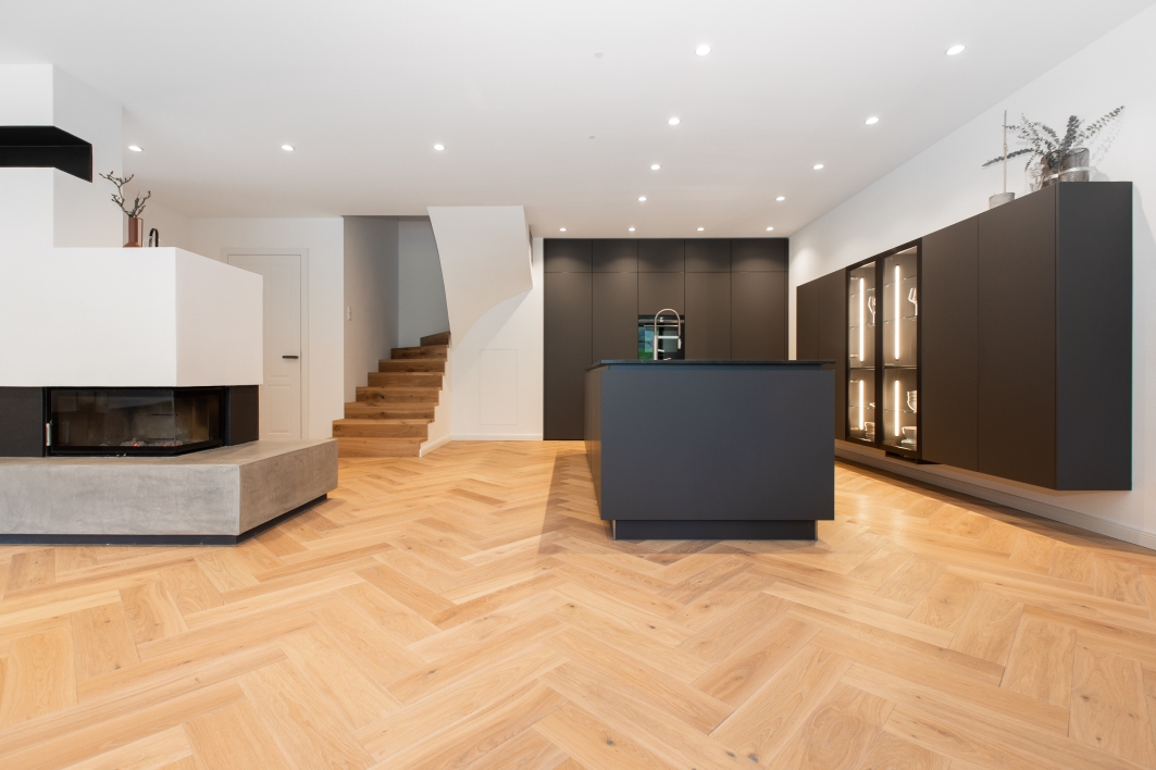 Akzent Herringbone 90° Eiche Astig/Natur, gebürstet, Weiß 10 geölt, 590x138 mm