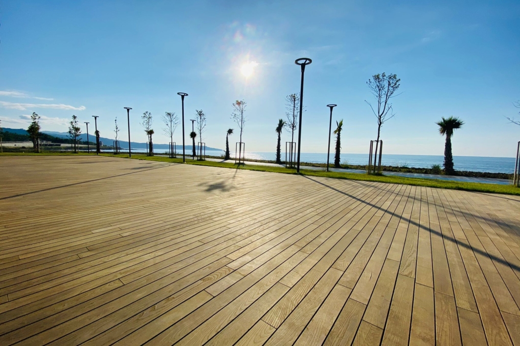 Thermo-Esche ist eine heimische und dauerhafte Alternative zu Tropenholz, die durch ein spezielles thermisches Verfahren hergestellt wird. Bei diesem Verfahren wird das Holz in einem Ofen unter hohen Temperaturen und ohne Sauerstoff behandelt, wodurch es seine Eigenschaften verbessert. Das Ergebnis ist ein Holz, das resistent gegen Feuchtigkeit, Fäulnis und Schädlingsbefall ist und eine höhere Haltbarkeit aufweist als unbehandeltes Holz. Ein weiterer Vorteil von Thermo-Esche ist seine schöne Optik. Durch das thermische Verfahren bekommt das Holz eine warme, dunkle Farbe und eine natürliche Maserung, die es zu einem attraktiven Material für viele Anwendungen macht.