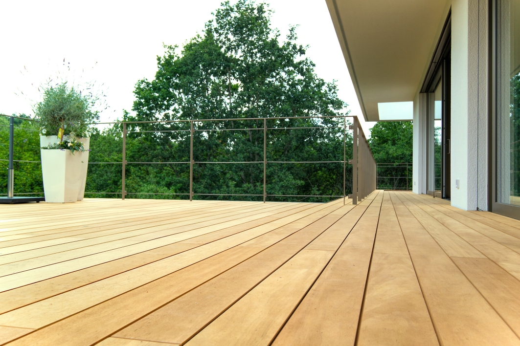 Garapa Terrassendielen heben sich mit ihrer natürlich gelblichen Färbung von anderen Hölzern ab und sind eine Besonderheit unter den Terrassendielen. Garapa hat eine hohe Formstabilität, Haltbarkeit, geringe Splinterneigung, kaum Rissbildung und eignet sich daher hervorragend für den Terrassenbau. Garapa ist unter den Exotenhölzern das hellste Holz. Garapaholz hat keinen Wechseldrehwuchs und ist astrein. Mit einer glatt gehobelten Oberfläche kommt das Oberflächenbild sehr schön zur Geltung.